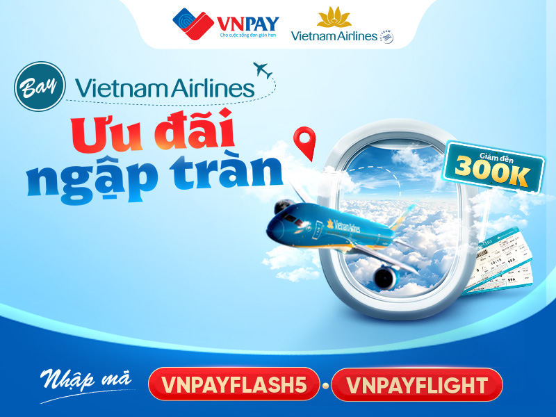 Từ nay đến hết 31/12/2025, khi thanh toán VNPAY-QR trên ứng dụng ngân hàng hoặc ứng dụng VNPAY khi mua vé máy bay Vietnam Airlines, bạn sẽ nhận ngay ưu đãi giảm giá lên tới 300.000 đồng. Chi tiết như sau: