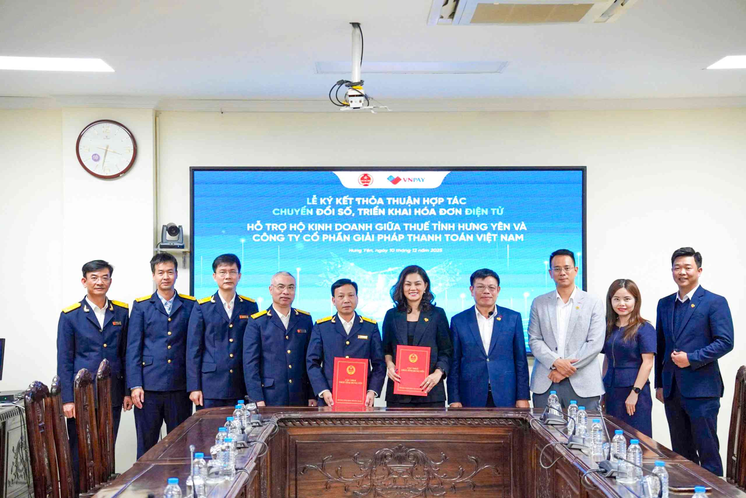 Ngày 10/12/2025, VNPAY và Thuế tỉnh Hưng Yên đã ký kết thỏa thuận phối hợp triển khai chuyển đổi số trong công tác thuế, tập trung vào hướng dẫn chính sách và hỗ trợ hộ kinh doanh áp dụng hóa đơn điện tử.
