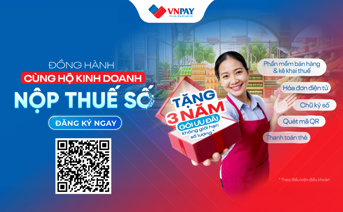 Nhằm hỗ trợ các hộ kinh doanh, cá nhân kinh doanh và doanh nghiệp trong việc quản lý bán hàng, xuất hóa đơn và thực hiện nghĩa vụ thuế thuận tiện hơn, VNPAY chính thức triển khai chương trình ưu đãi tặng bộ giải pháp Nộp thuế số trên phạm vi toàn quốc, áp dụng từ nay đến hết ngày 31/12/2028.