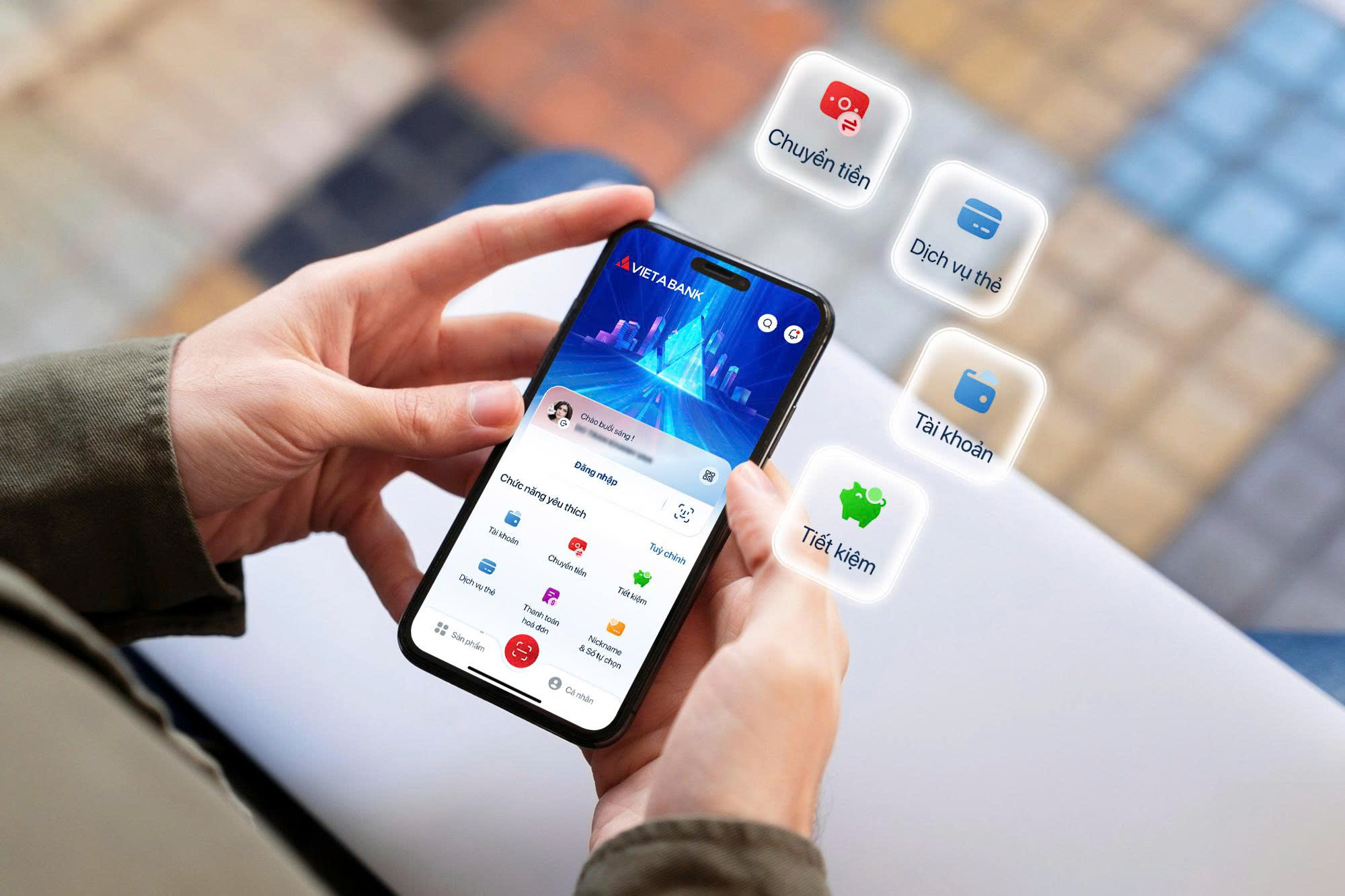 Bên cạnh giao diện thân thiện, dễ sử dụng, nền tảng Ngân hàng số VIETABANK còn cho phép khách hàng tự do cá nhân hóa không gian số theo phong cách riêng. Quan trọng hơn, ứng dụng còn được tích hợp nhiều tiện ích tài chính từ các chức năng cơ bản như chuyển khoản 24/7, thanh toán bằng mã VNPAY-QR, gửi tiết kiệm cho đến các tiện ích nâng cao như đặt taxi, đặt vé tàu, xe, máy bay, phòng khách sạn, vé xem phim, mua sắm trực tuyến, đặt hoa, giao hàng…