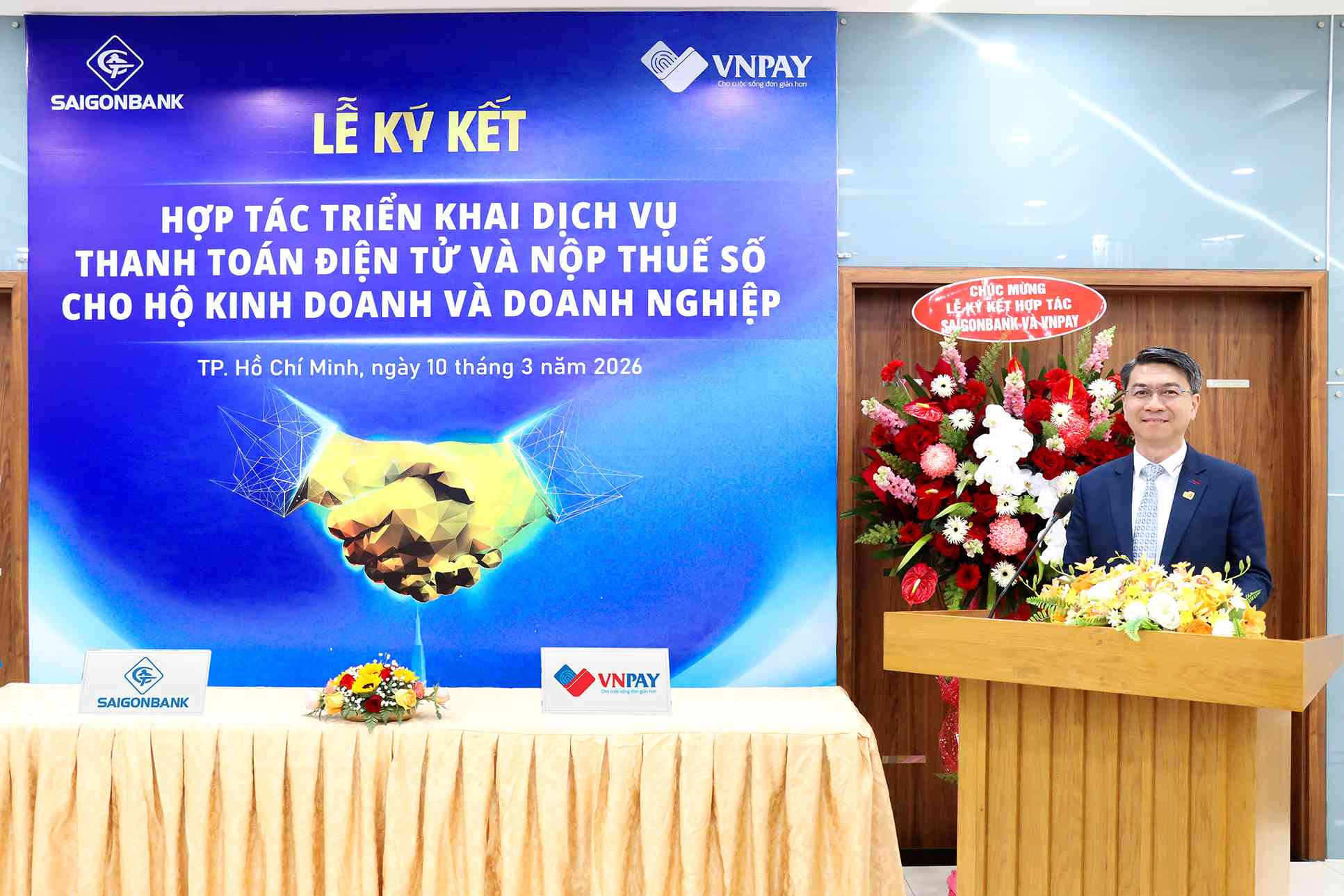 Ngày 10/03/2026, Ngân hàng TMCP Sài Gòn Công Thương (SAIGONBANK) và Công ty Cổ phần Giải pháp Thanh toán Việt Nam (VNPAY) ký kết hợp tác triển khai gói dịch vụ “Thanh toán điện tử và Nộp thuế số”, hỗ trợ hộ kinh doanh và doanh nghiệp nộp thuế số dễ dàng, tiết kiệm chi phí và đáp ứng yêu cầu về thuế theo quy định mới.