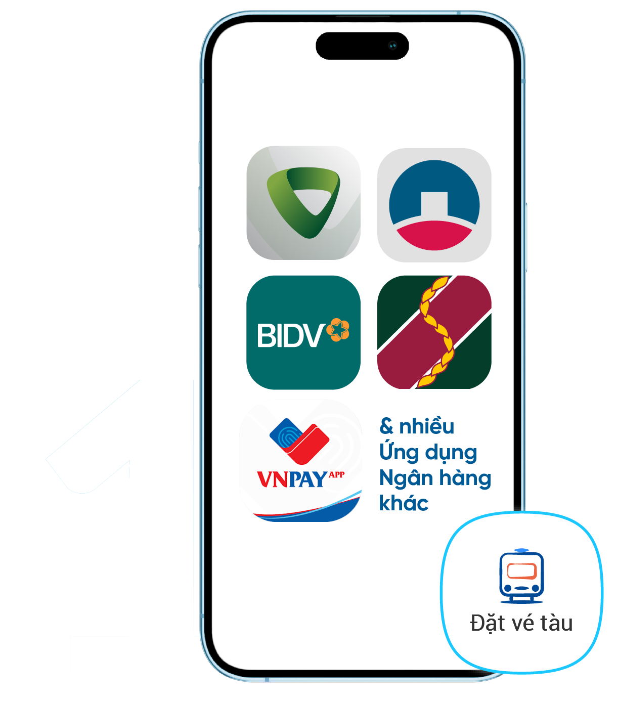 Hiện tại bạn có thể Đặt vé tàu qua Ví VNPAY hoặc các ứng dụng ngân hàng (app ngân hàng) của các Ngân hàng Vietcombank - VietinBank - Agribank - BIDV - CoopBank - BAOVIET Bank - An Bình Bank - OceanBank - Saccombank - Eximbamk - HDBank,.....