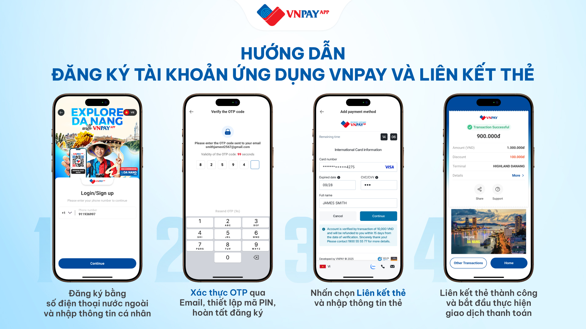 Du khách dễ dàng đăng ký tài khoản ứng dụng VNPAY bằng số điện thoại nước ngoài