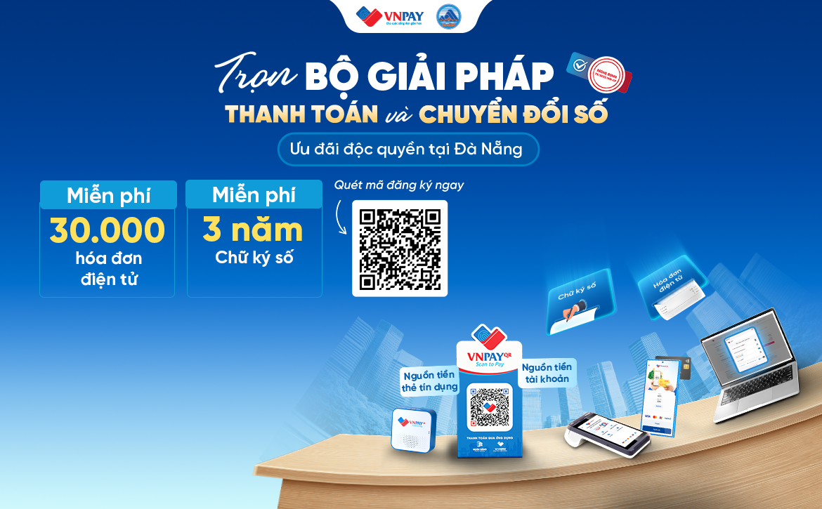 Đặc biệt, VNPAY hiện đang triển khai gói ưu đãi đặc thù dành riêng cho các doanh nghiệp, hộ kinh doanh tại Đà Nẵng: Miễn phí 30.000 hóa đơn điện tử, 3 năm gói chữ ký số HSM. Nhờ bộ giải pháp tích hợp, doanh nghiệp và hộ kinh doanh có thể vận hành liền mạch từ thanh toán đến xuất hóa đơn, đồng thời áp dụng chuẩn mực mới về chứng từ điện tử một cách nhanh chóng và hiệu quả.