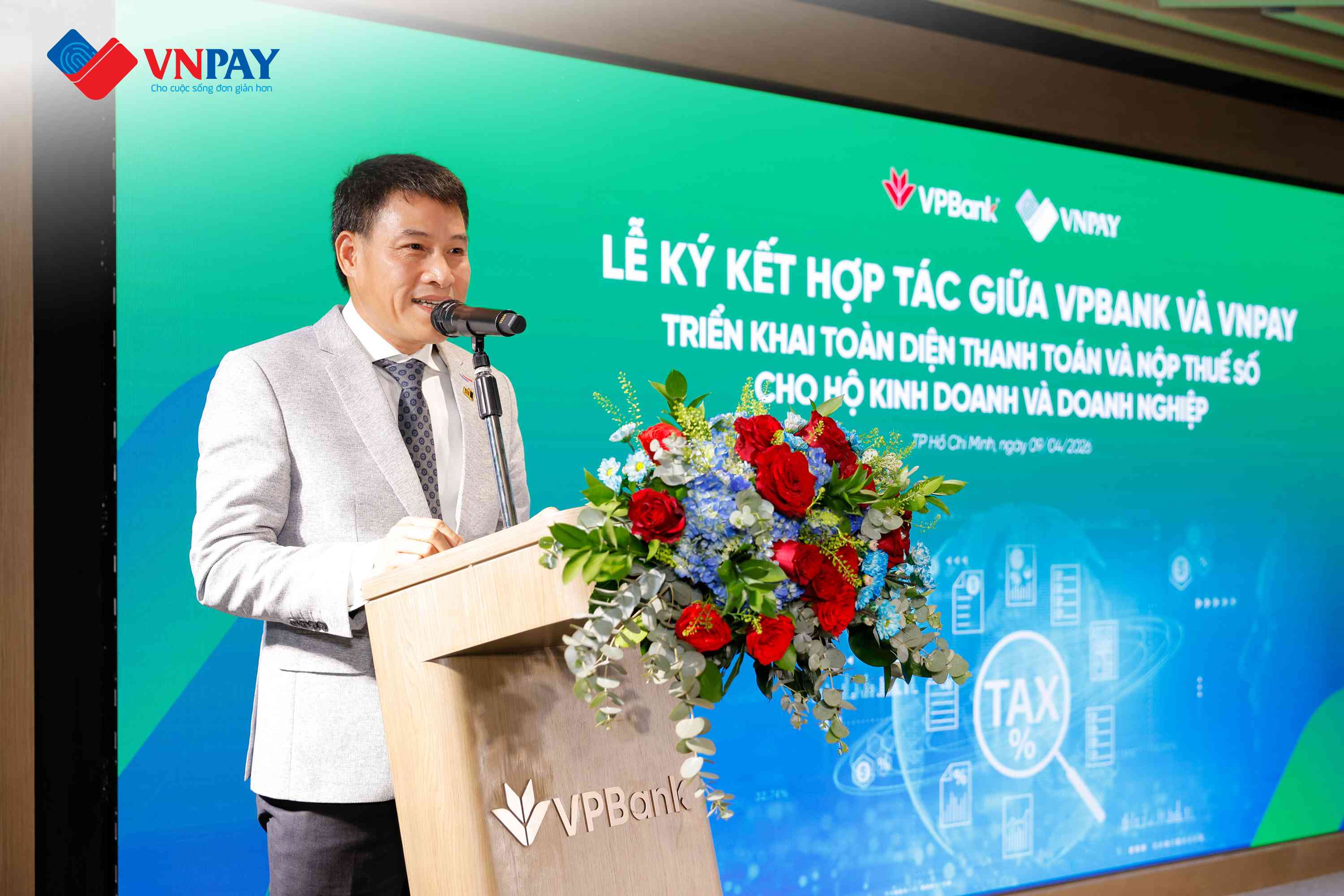 Đại diện đơn vị cung cấp giải pháp, ông Hoàng Sơn - Phó Tổng giám đốc VNPAY chia sẻ: “VNPAY không chỉ là đơn vị cung cấp công nghệ, mà định hướng trở thành đối tác đồng hành lâu dài với hộ kinh doanh, để trong thời gian tới thanh toán hay nộp thuế số sẽ trở thành thói quen với những thao tác bất kể ai cũng có thể thực hiện được mà không gặp bất cứ trở ngại nào. Hợp tác giữa VNPAY và VPBank không chỉ giúp hộ kinh doanh nâng cao hiệu quả vận hành, mà còn giúp họ tối ưu chi phí thông qua chính sách miễn phí phần mềm quản lý bán hàng và trọn bộ giải pháp nộp thuế số đến hết năm 2028”.
